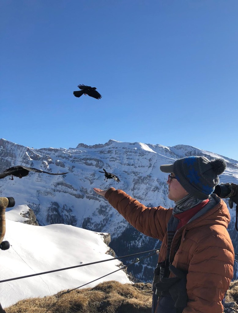 Me feeding Alpine Choughs. They may be dross ski-resort fodder but are no less enigmatic and another string to the bow of high-montane birding possible without the car.