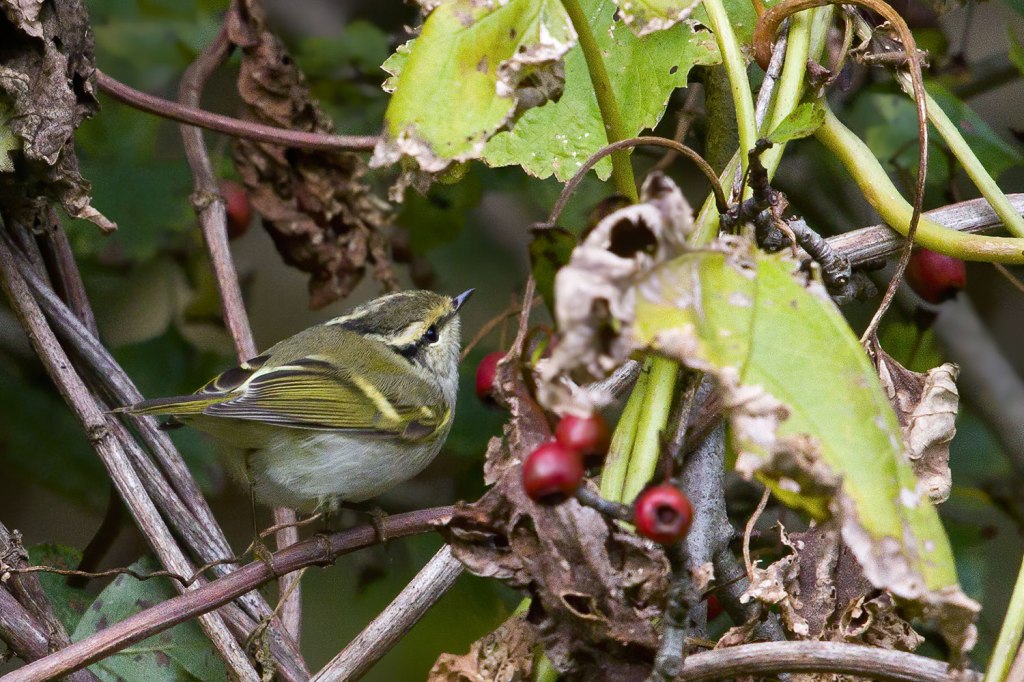 15 October On 15 October the local patch was kind to me. An arrival of migrants included a couple of Yellow-browed Warblers, a Siberian Chiffchaff and a blythi Lesser Whitethroat. Then, whilst carefully working through some willows, a Pallas’s Warbler call stopped me dead. I was fired up, but that single call soon melted away into nothing. Sticking with it, about an hour later another call finally gave away the stripey sprite’s location and eventually it showed well. OK, it’s not some monster rarity, but it’s always a treat when you clap your eyes on a Pallas’s Warbler. The following day I had a Pallas’s double vision moment when it was joined by a second birdpatchtastic! Gary Woodburn