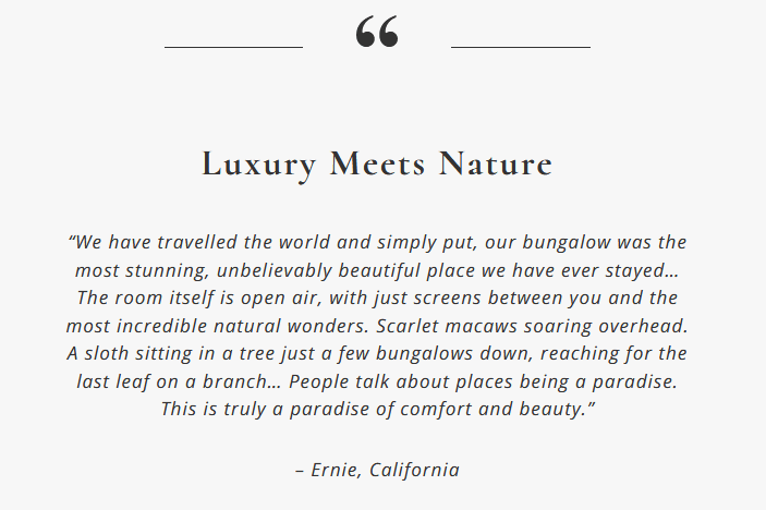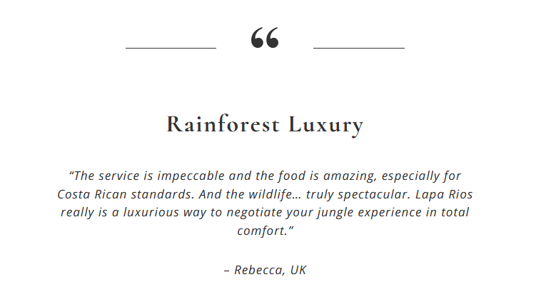 ‘The most important goal of the Lapa Ríos project is to ensure the preservation of the primary forest reserve in perpetuity. This goal was the motivation to create Lapa Ríos and it remains the principal goal … With this as the “ends” goal, the “means” to achieving it is running a high quality profitable ecolodge operation.‘